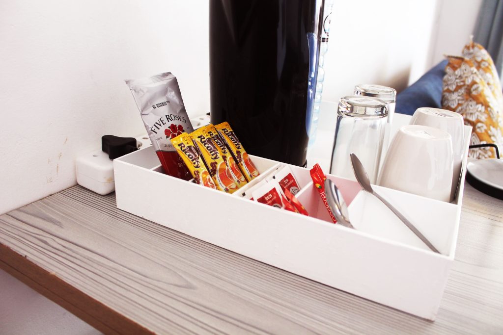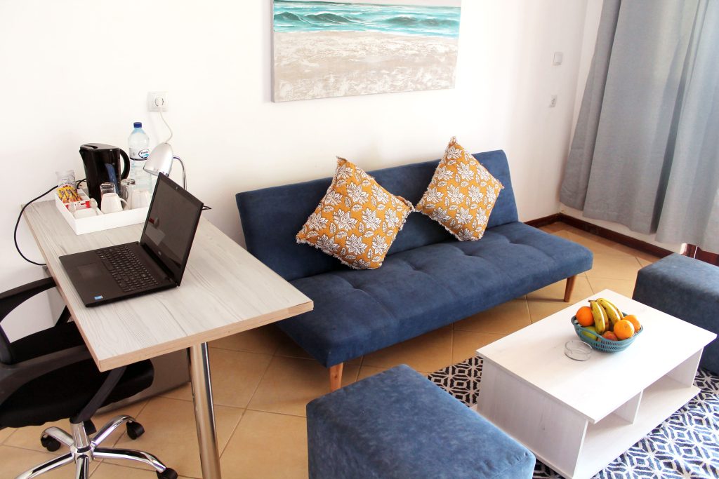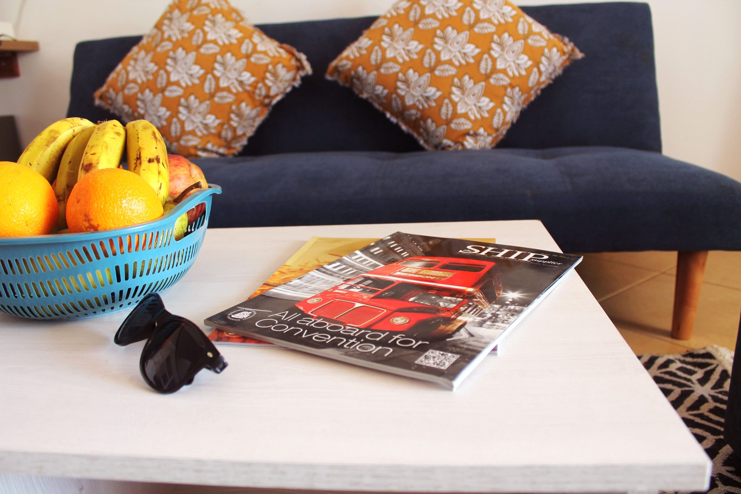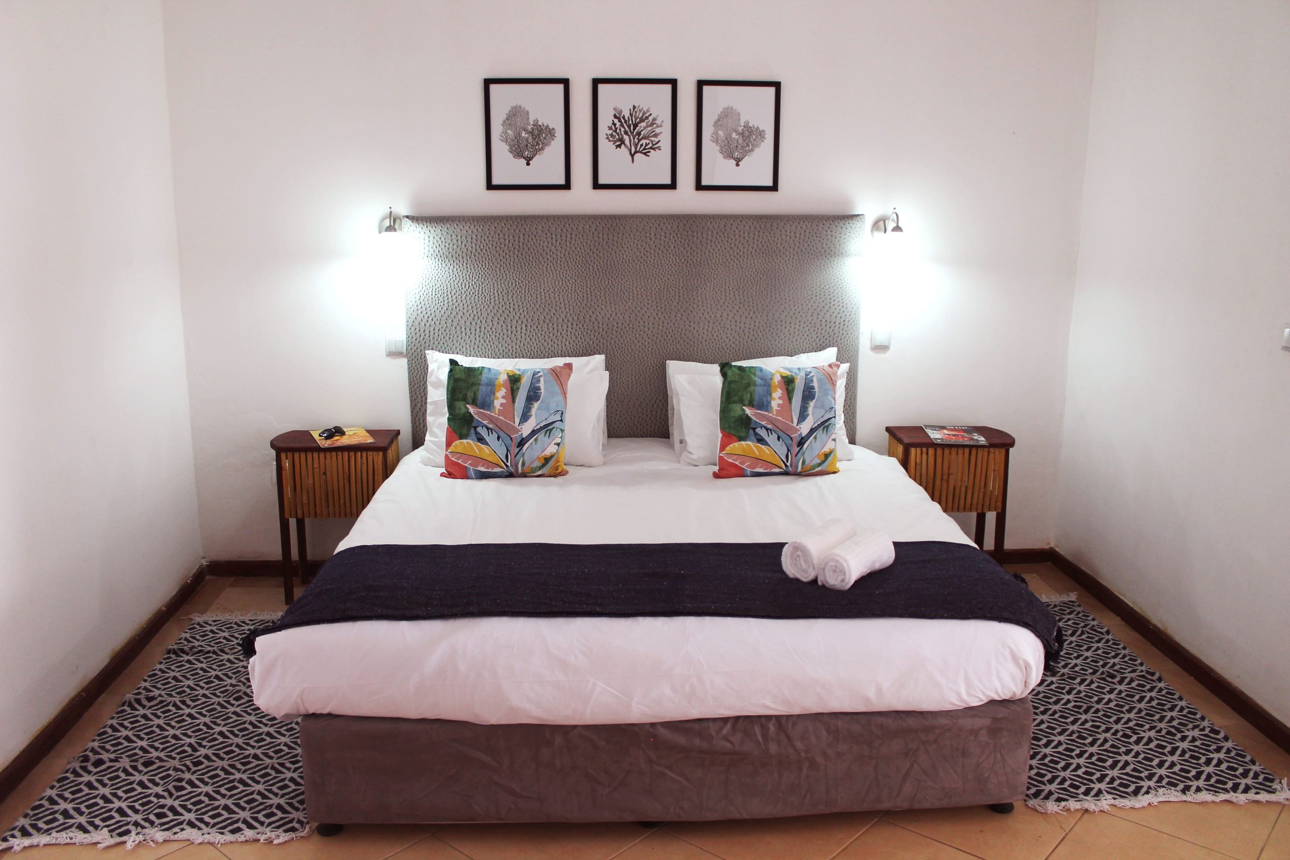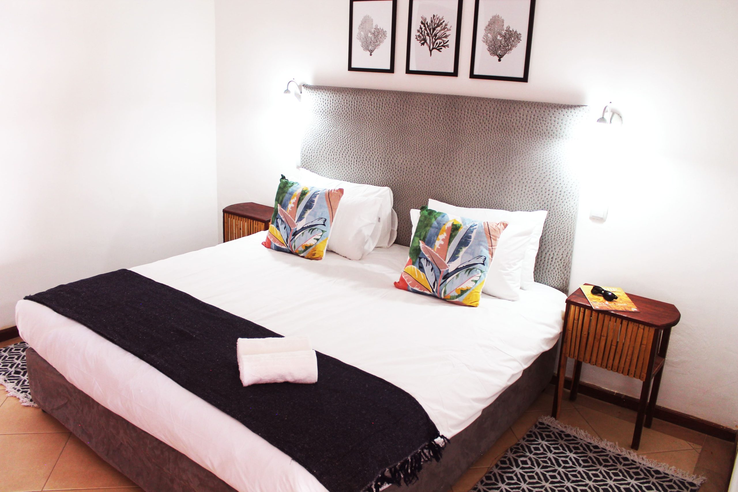 A king bed and a bathroom, it features individually adjustable heating and air conditioning, a bathroom and living-dining room with TV.